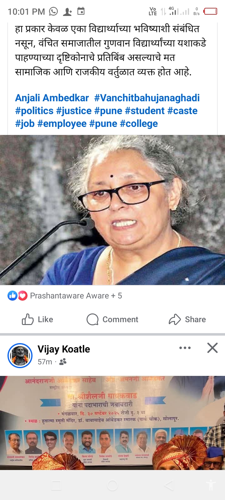 वंचित विद्यार्थ्याचं यश कॉलेजला पचवता आलं नाही; दिरंगाईवरून मॉडर्न कॉलेजवर अंजलीताई आंबेडकरांचा निशाणा
